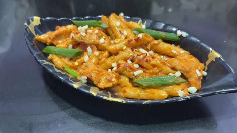 Cheesy Schezwan Chicken Pasta